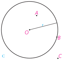 همان طور که می دانید تمام نقاطی که روی دایره واقع اند از مرکز دایره به یک فاصلهٔ ثابت (اندازهٔ شعاع دایره) هستند. معمولاً دایرهٔ C به مرکز O و شعاع r را به صورت C(O,r) نمایش می دهیم. با توجه به شکل دایره به سادگی می توان نشان داد که: