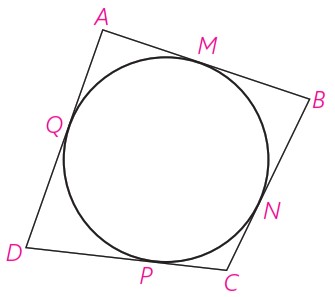 1 اگر چهارضلعی ABCD محیطی باشد، AB+CD=AM+…+PC+…=AQ+…+CN+…=AD+BC عکس این قضیه نیز با برهان خلف ثابت می شود.