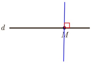 خط d و نقطه M روی آن مانند شکل مشخص شده اند. می خواهیم خطی رسم کنیم که از M بگذرد و بر خط d عمود باشد.