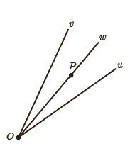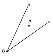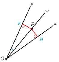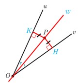(راهنمایی: پاره خط OP را و دو عمود از نقطهٔ P بر Ou و Ov رسم کنید و با استفاده از هم نهشتی مثلث ها نشان دهید OP همان نیمساز زاویهٔ uOv است.)