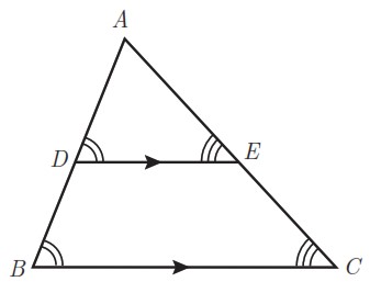 خطوط DE و BC موازی هستند و خط AB نیز مورّب می باشد؛ بنابراین: