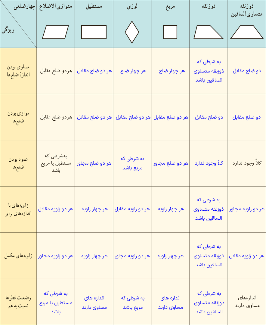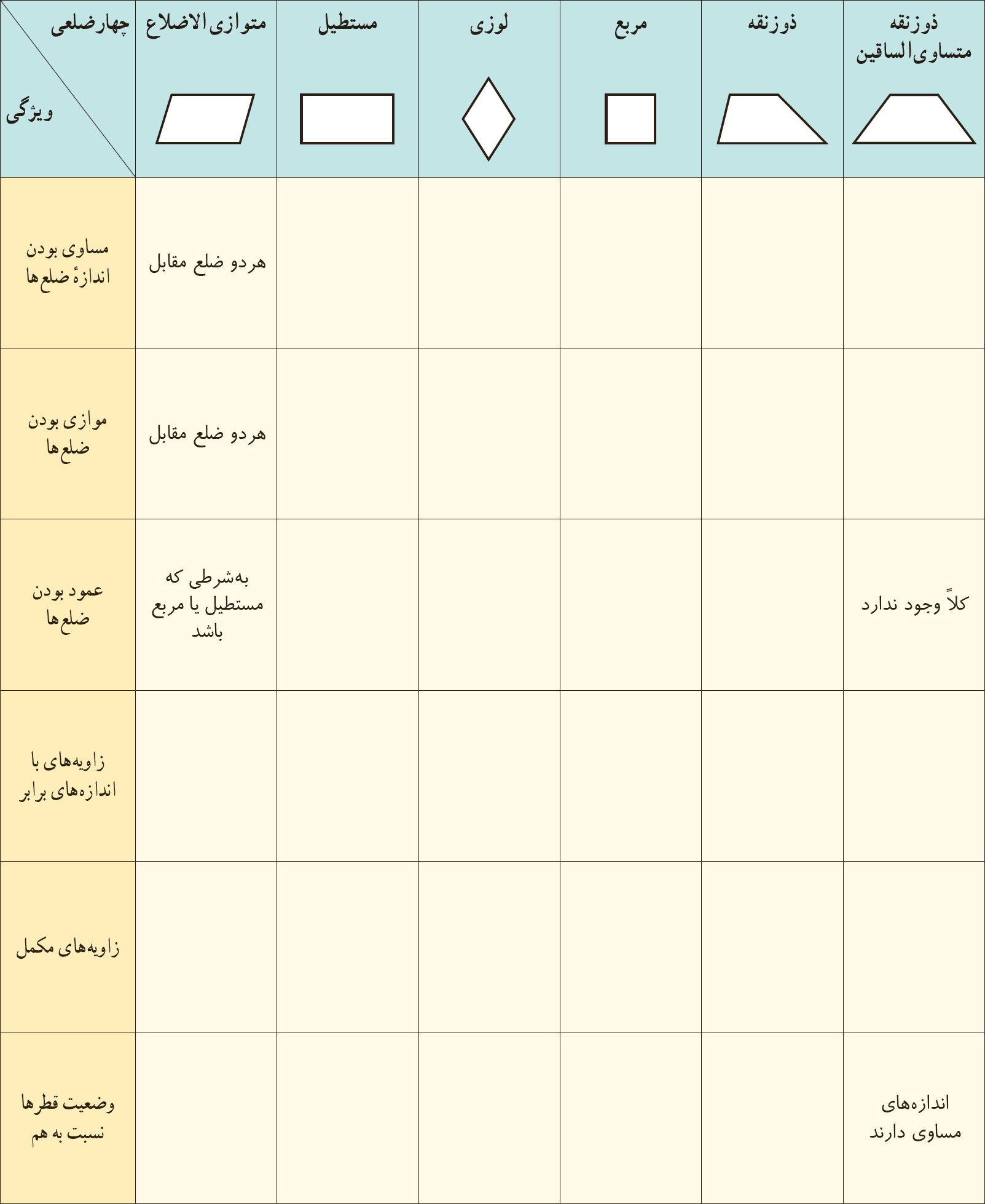 جدول زیر را تکمیل کنید.