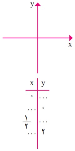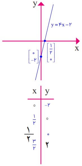 نمودار خط y=4x-2 را روی محورهای زیر رسم کرده و جدول داده شده را کامل کنید: