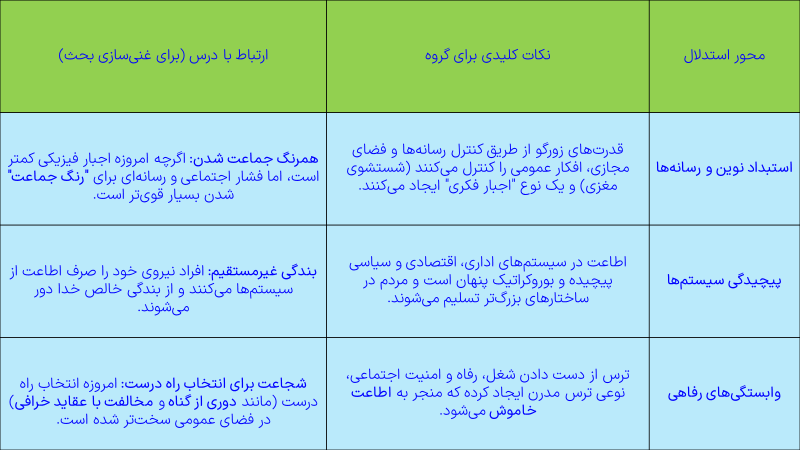 2 استدلالهای گروه «اطاعت بیشتر در جوامع امروزی»