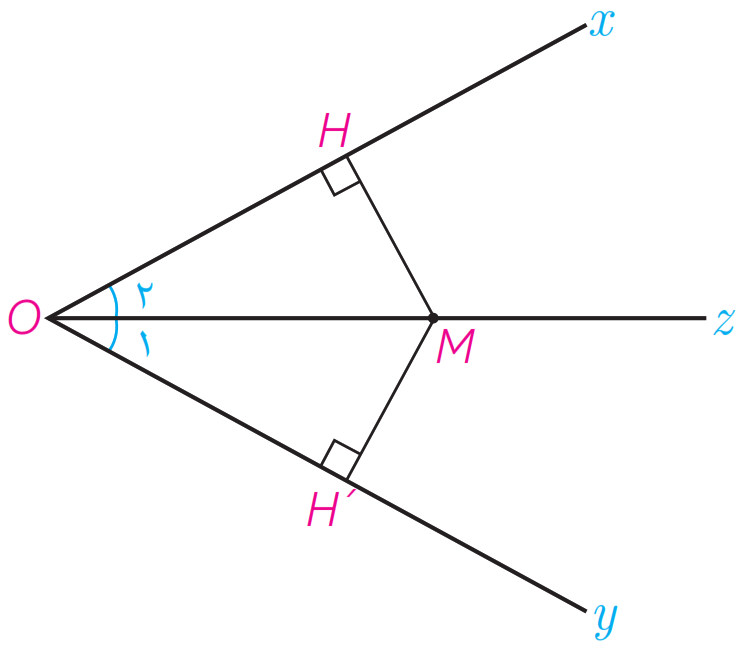 الف یک نقطه روی نیمساز زاویه است، اگر و تنها اگر ...از دو ضلع آن به یک فاصله باشد:.. .