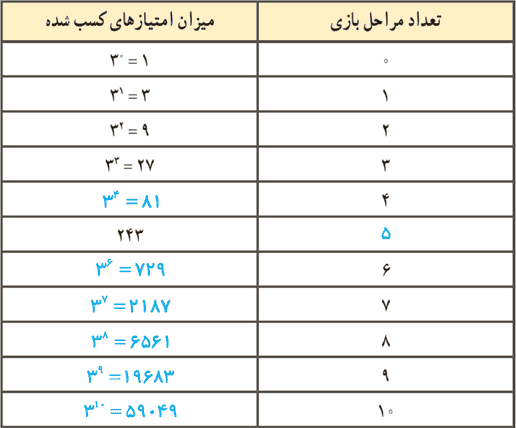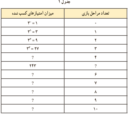 3 آیا اعداد این جدول، الگویی را مشخص می کند؟ بین تعداد مراحل بازی و میزان امتیازات کسب شده، رابطه ای به دست آورید.