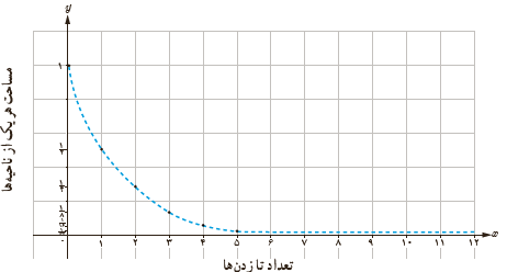 در نمودار زیر، رابطهٔ تعداد تا زدن ها و میزان مساحت هر یک از ناحیه ها نمایش داده شده است.