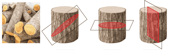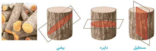 ب سطح مقطع استوانه با صفحه های عمودی، افقی و صفحهٔ مایلی که با قاعده های استوانه متقاطع نباشد، به چه شکل است؟