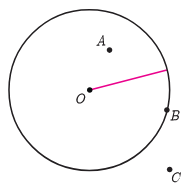 پ اگر نقطه ای مثل C بیرون دایره باشد، فاصلهٔ آن تا مرکز دایره است، یعنی OC …. R
