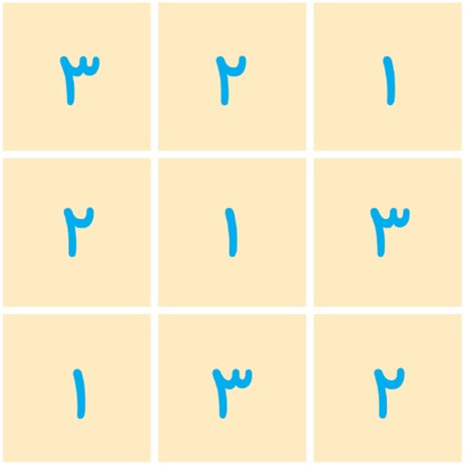 1 به جای نام سه مدرس مذکور به ترتیب اعداد 1 ، 2 و 3 را قرار دهید و یک جدول 3×3 از اعداد به دست آورید.