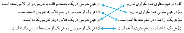 b هر یک از مدرسین در تمام کلاس ها تدریس داشته است.
