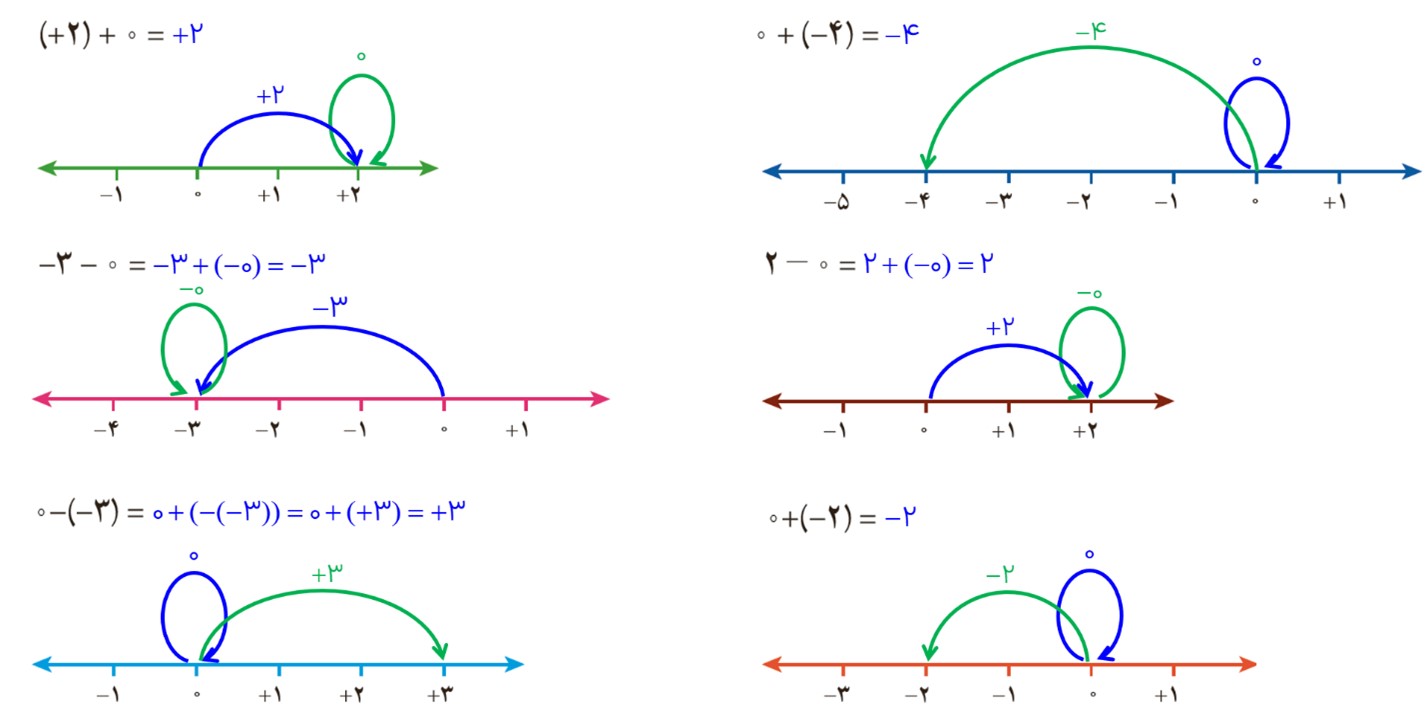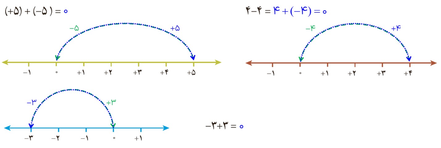 از این فعالیت نتیجه میگیریم که حاصل جمع هر عدد با قرینهاش برابر صفر است.
