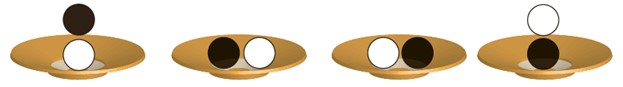 1 اگر هر دایرهٔ سفید \((\bigcirc )\) نشان دهندۀ 1+ و هر دایرۀ سیاه (●) نشان دهندۀ 1- باشد، وقتی مانند شکل زیر آنها را روی هم و داخل یک ظرف می ریزیم (به عبارت دیگر باهم جمع می کنیم)، حاصل آن چقدر می شود؟ چرا؟