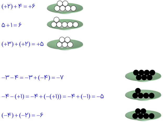 نتیجه: اگر هر دو عدد مثبت باشند، حاصل جمع آنها مثل جمع دو عدد طبیعی است.