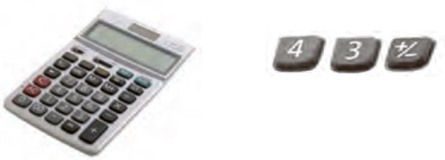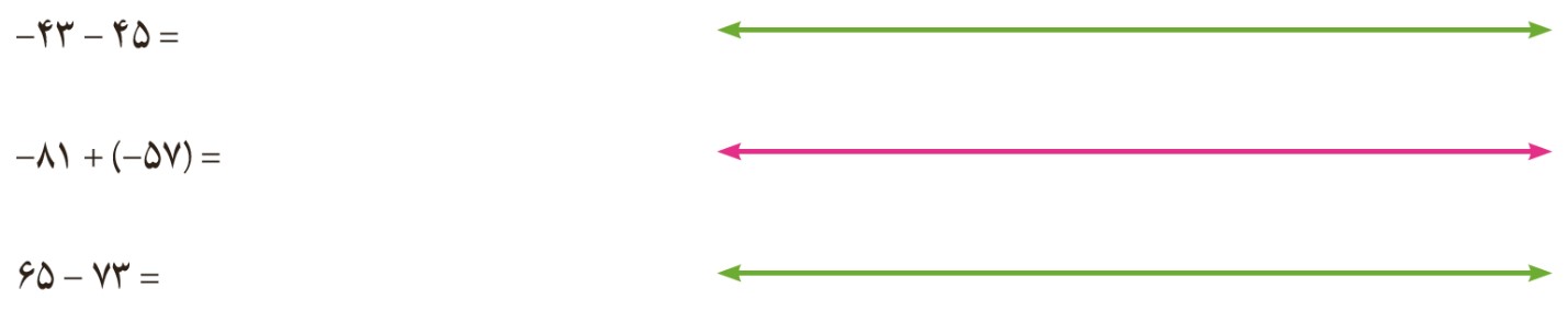 2 حاصل هر عبارت را به کمک ماشین حساب به دست آورید و درستی پاسخ های خود را بررسی کنید. برای منفی کردن عددها از کلید \( + / - \) استفاده کنید. این کلید عدد روی صفحه را قرینه می کند. برای وارد کردن عدد 43- دکمه ها را به ترتیب از چپ به راست وارد کنید.