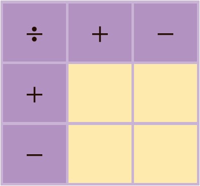 \(\begin{array}{*{20}{l}}{( - 12) \div ( + 2) = }&{}&{( + 21) \div ( - 3) = }\\{}&{}&{}\\{( - 14) \div ( - 7) = }&{}&{( + 21) \div ( + 7) = }\end{array}\)