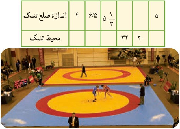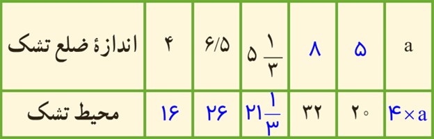 1 یک تشک کشتی به شکل مربع است. جدول زیر را کامل کنید.