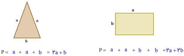 3 حالا محیط مثلث متساوی الساقین و مستطیل را به دست آورید.