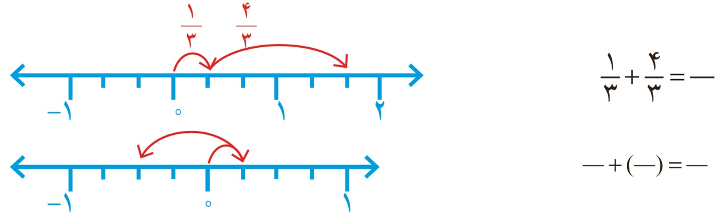 با توجه به تساوی های زیر، توضیح دهید که چگونه می توانیم حاصل جمع و تفریق دو عدد گویا را با استفاده از جمع و تفریق دو عدد صحیح به دست آوریم.