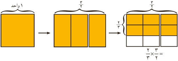در مرحلهی بعد، میخواهیم حاصل ضرب \(\frac{2}{3} \times \frac{3}{2}\) را نشان دهیم، که به معنی پیدا کردن «دو سوم از مقدار سه دوم» است.