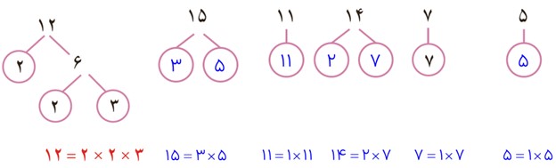 3 مانند نمونه ها با رسم نمودارهای درختی، عددهای داده شده را به صورت ضرب شمارنده های اول بنویسید (تجزیه کنید).