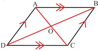در هر متوازی الاضلاع، قطرها یکدیگر را نصف می کنند.