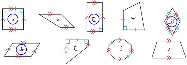 1 با توجه به تعریف متوازی الاضلاع، کدام یک از شکل های زیر متوازی الاضلاع است؟