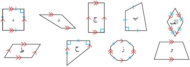 2 در اینجا چند چهارضلعی دیگر هم تعریف شده است. هر تعریف را بخوانید و از میان چهارضلعی های فعّالیت قبل، مثال هایی برای هریک پیدا کنید.