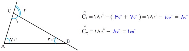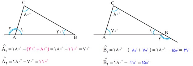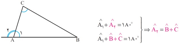 بنابراین در هر مثلث، اندازه هر زاویه خارجی برابر با مجموع دو زاویه داخلی غیرمجاور آن است.