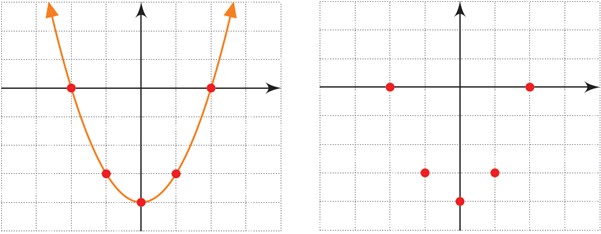 نقاط به دست آمده در جدول بالا را در یک دستگاه مختصات مشخص کرده و آنها را به یکدیگر وصل می کنیم (شکل های روبه رو).