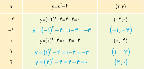 معادلۀ y=x2-4 را درنظر بگیرید.
