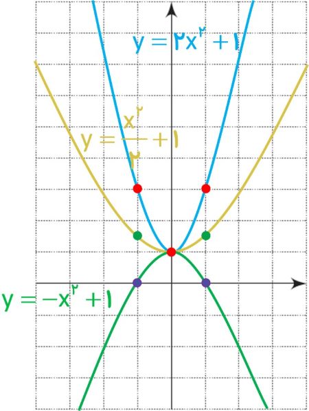 معادلهٔ دو سهمی به صورت \(y = \frac{{{x^2}}}{2} + 1\) و \(y = 2{x^2} + 1\) است.