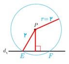 محل برخورد دایره با این خط یعنی نقاط E و F جواب این مسئله هستند.