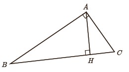 فرض کنید مثلث ABC مانند شکل یک مثلث قائم الزاویه و AH ارتفاع وارد بر وتر آن باشد.