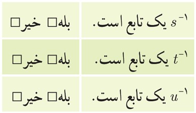 \({f^{ - 1}}\) تابع محسوب می شود ولی \({g^{ - 1}}\) خیر.