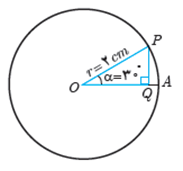 \(\begin{array}{l}\sin \alpha = \frac{{PQ}}{{OP}} \Rightarrow \sin {30^ \circ }\\\\ = \frac{1}{2} = \frac{{PQ}}{2} \Rightarrow PQ = 1\end{array}\)