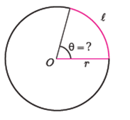 3 در یک دایره به شعاع r، مانند شکل زیر، طول کمان روبه رو به زاویهٔ \(\theta \) (کمان L) برابر طول شعاع دایره است. نسبت طول کمان به شعاع چقدر است؟