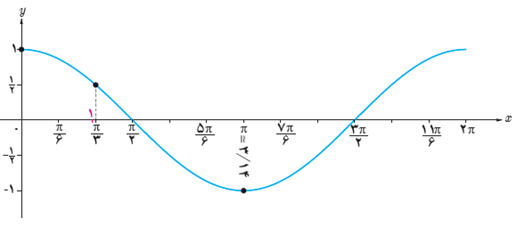 پ بیشترین و کمترین مقدار تابع y=cosx در این بازه چقدر است؟