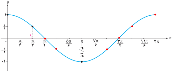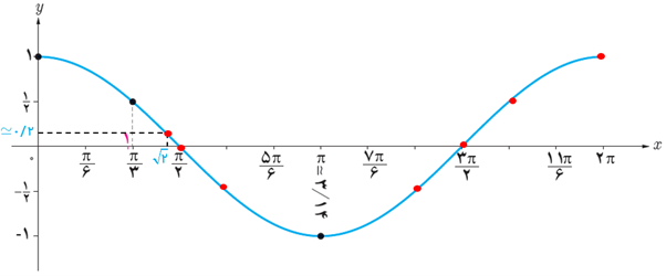 الف آیا می توان بر روی محور xها عددی مانند x یافت که برای آن \(\cos x = \frac{1}{3}\) باشد؟