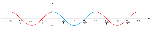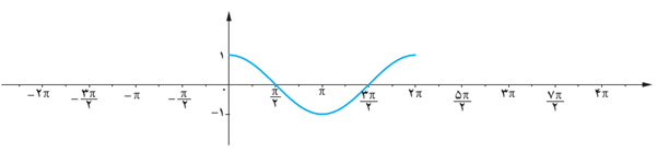 3 از درس های قبل می دانیم که cos(x+2kπ)=cosx و نیز cos(-x)=cosx با استفاده از این روابط مقدار تابع y=cosx را در دیگر نقاط داده شده بر روی محور xها به دست آورید و نمودار تابع را از دو طرف ادامه دهید. آیا نمودار این تابع در بازه های \([2π , 4π]\)و \([0 , 2π]\)و \([-2π , 0]\) با هم متفاوت هستند؟