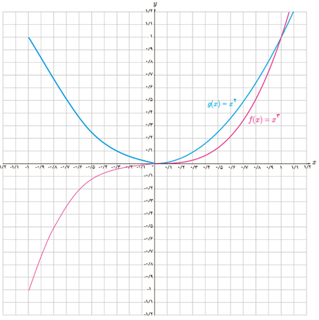 الف آیا برای تمام x های منفی، نمودار \(f\left( x \right) = {x^3}\) بالای نمودار \(g\left( x \right) = {x^2}\) قرار دارد؟