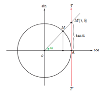 \(\tan \alpha = \frac{{AM'}}{{OA}} = \frac{{AM'}}{1} = AM' = b\)