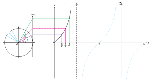 در شکل زیر نمودار تابع y=tanx در ربع اول رسم شده است. مشابه آن، نمودار این تابع را در ربع های دیگر رسم کنید.