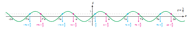 \(\pi - \frac{\pi }{6}\) :هم انتها با \(............., - \pi - \frac{\pi }{6},\pi - \frac{\pi }{6},3\pi - \frac{\pi }{6},.........\)