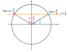 \(\begin{array}{l}\sin \frac{\pi }{6} = \frac{1}{2}\\\\\sin \frac{{5\pi }}{6} = \sin (\pi - \frac{\pi }{6}) = \frac{1}{2}\\\\\sin - \frac{{7\pi }}{6} = \sin ( - \pi - \frac{\pi }{6}) = \frac{1}{2}\end{array}\)