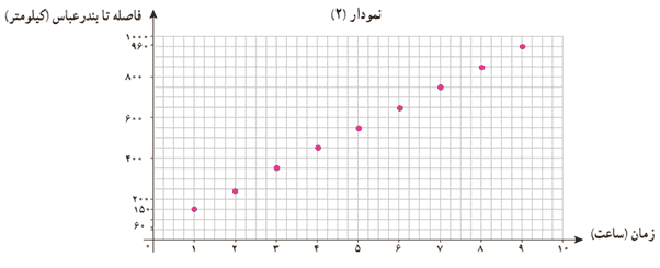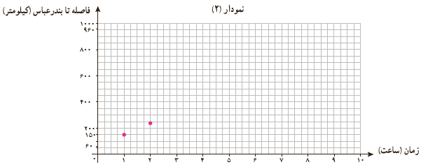 ب اگر راهبر این قطار به دلایلی مانند رعایت سرعت مجاز و امنیت قطار موظف باشد پس از حرکت، مسافت طی شده در هر «یک ساعت» را به مرکز بندرعباس گزارش دهد، این نقاط را به کمک نمودار (1) در نمودار (2) کامل کنید.