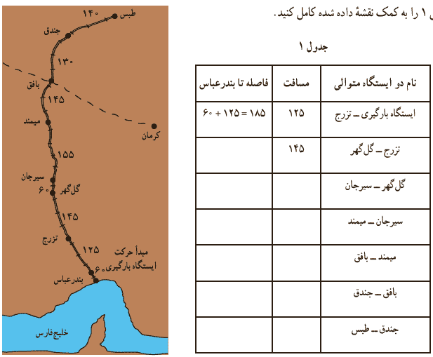 د جدول 1 را به کمک نقشهٔ داده شده کامل کنید.
