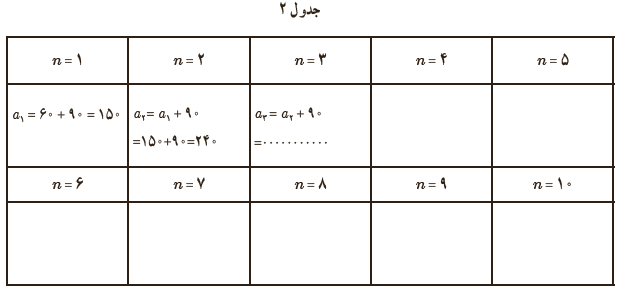 هـ با فرض اینکه an مسافت طی شدهٔ قطار n ساعت پس از ترک ایستگاه بارگیری باشد، جدول 2 را به کمک نمودار (2) کامل کنید.