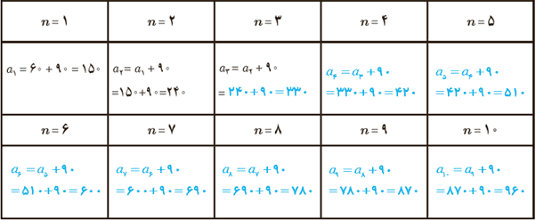 اضافه شدن 90 به هر جمله ای برای تعیین جمله بعدی.