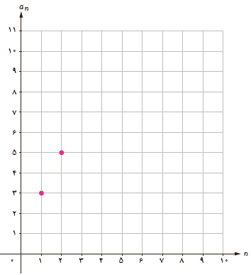 الف با محاسبهٔ سه جملهٔ دیگر دنباله، نمودار زیر را کامل کنید.